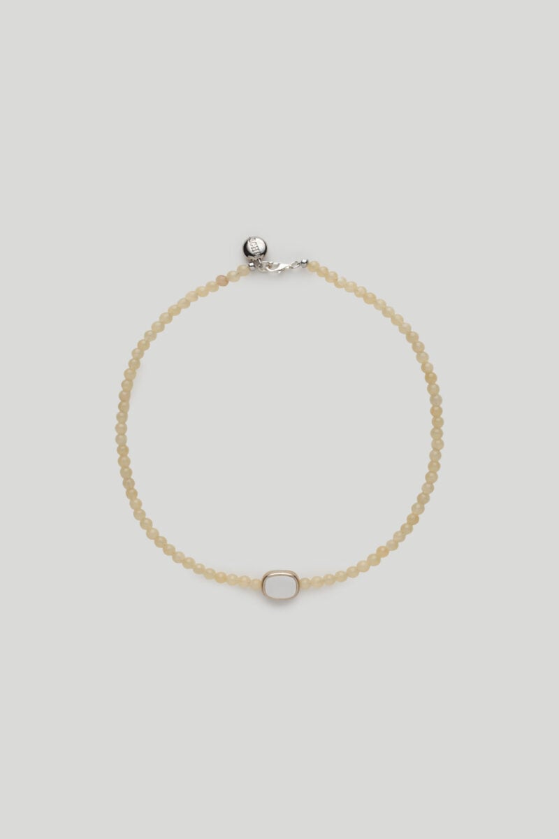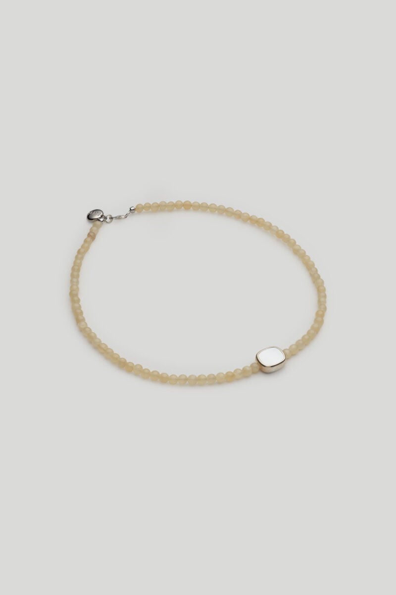 10% Sterling Silver / 2% Mother of Pearl / 88% Yellow Jadeite