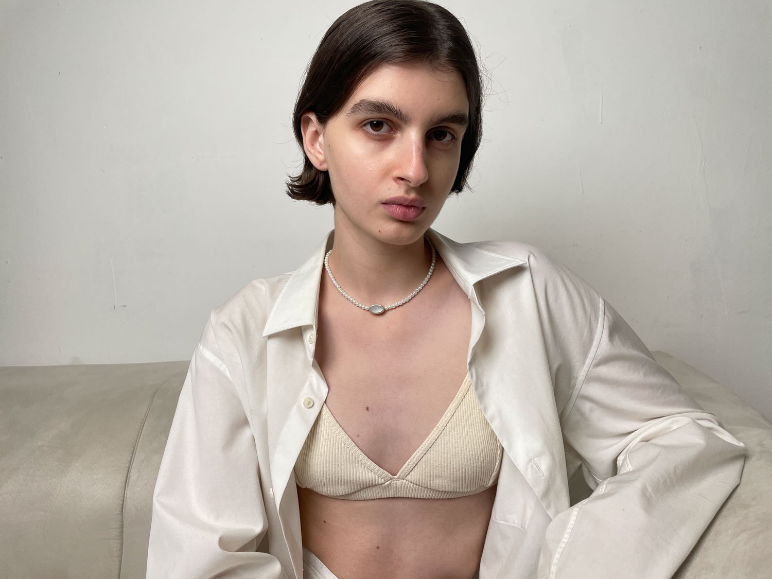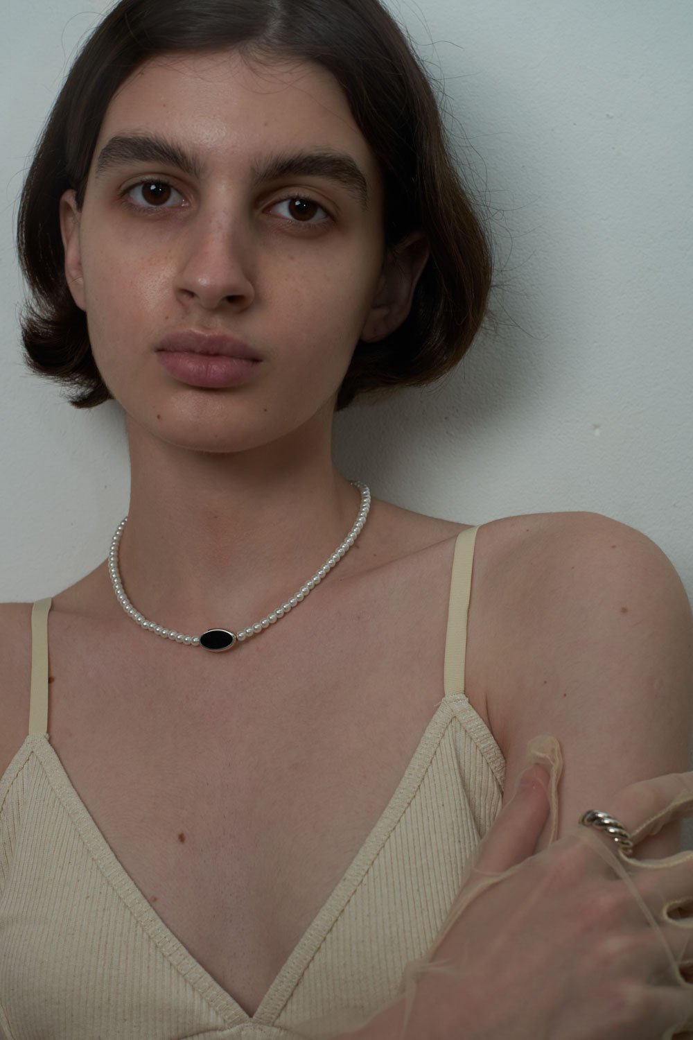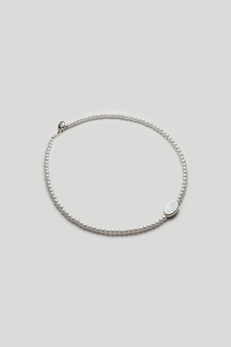 15 % Sterling Silver / 2 % Mother of Pearl / 83 % Matte Glass Pearls