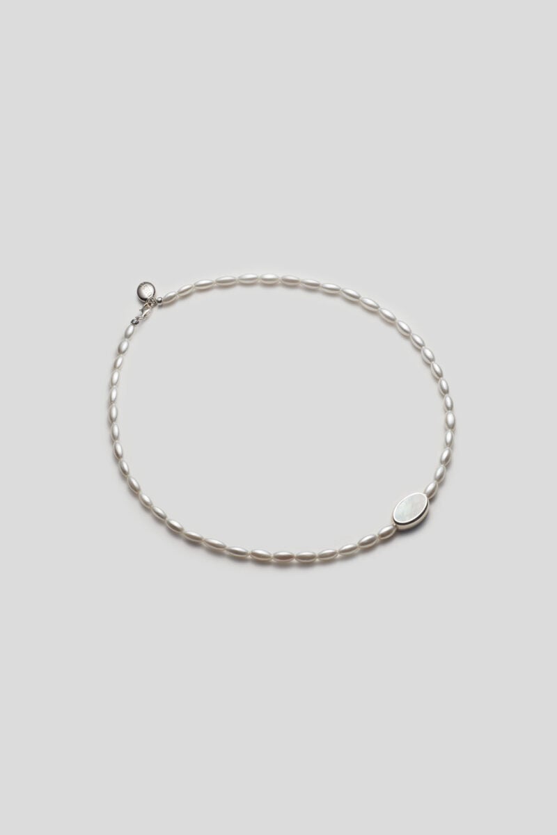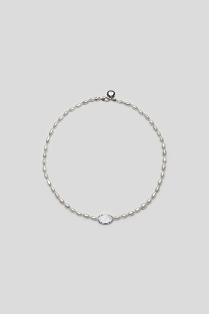 15 % Sterling Silver / 2 % Mother of Pearl / 83 % Oval Glass Pearls