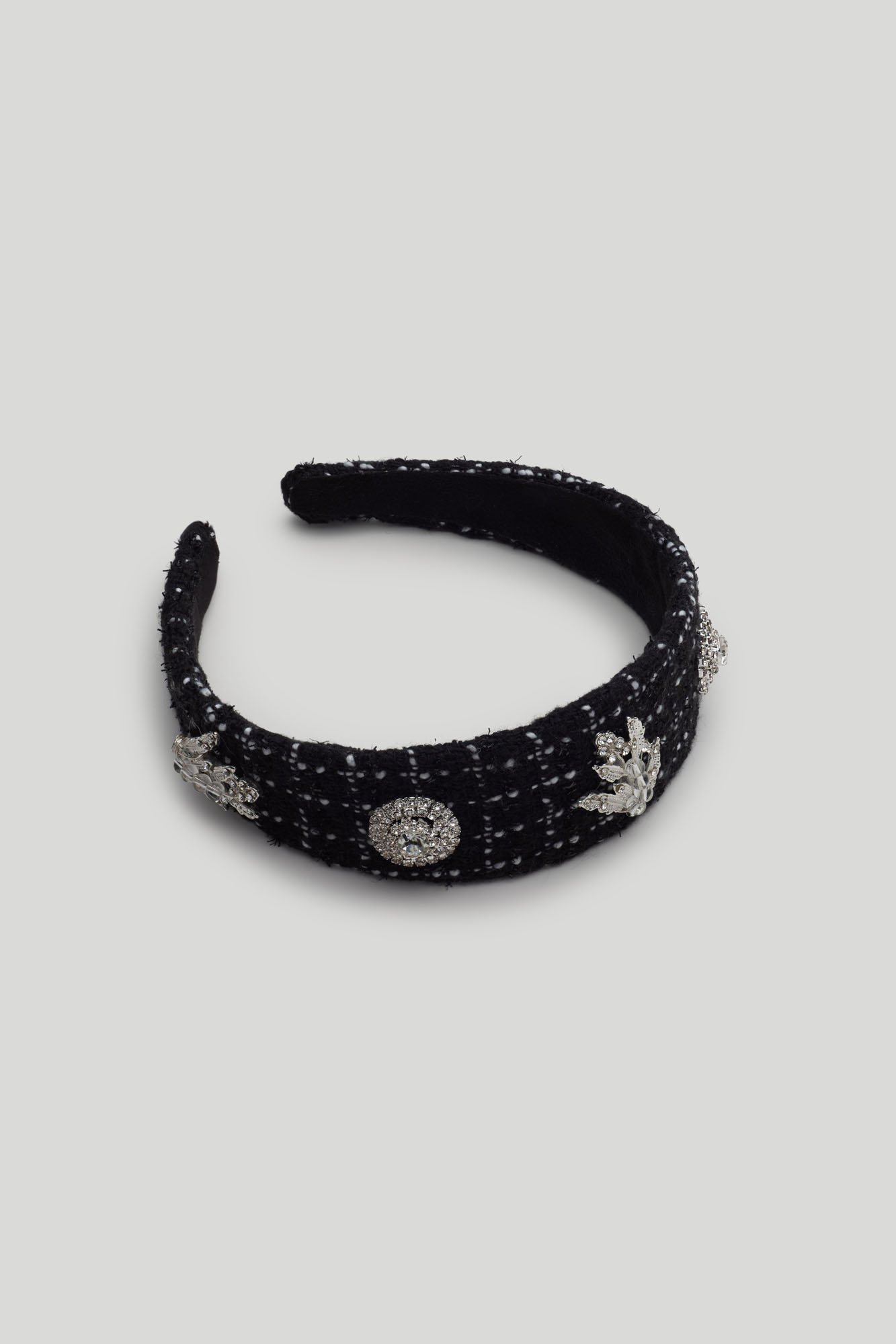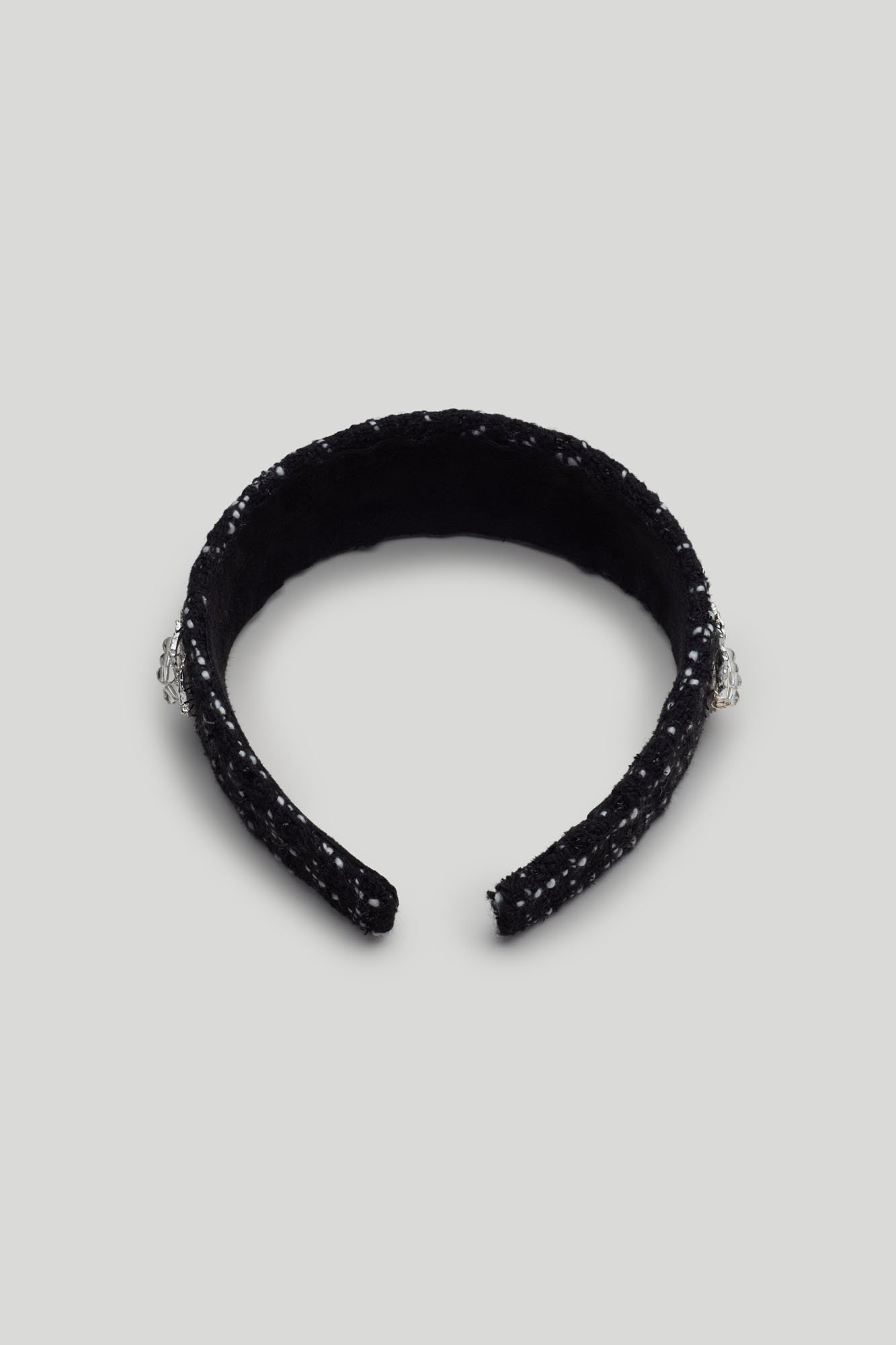 45% Tweed / 30% Plastic / 15% Brass / 9.8% Crystals / 0.2% White Gold Platings