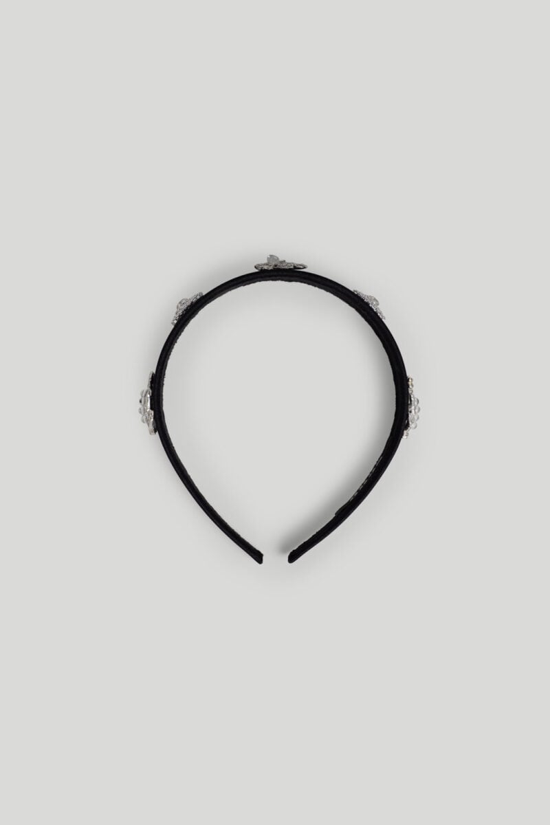 Satin, brass white gold plating. crystals