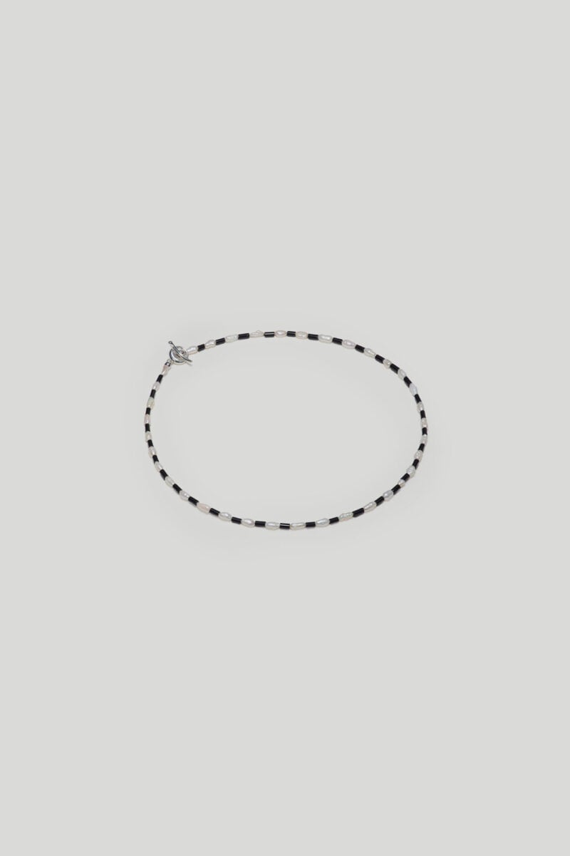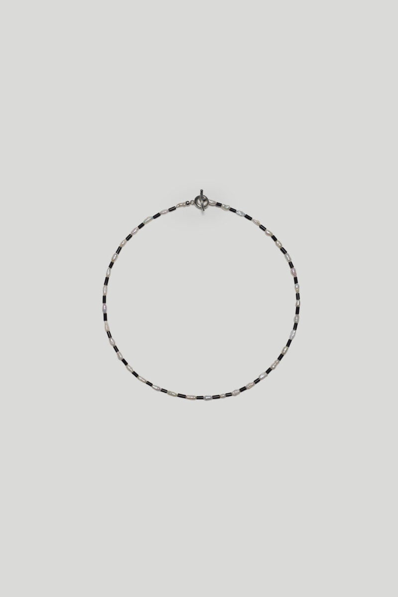 10% Sterling Silver, 45% Glass Pearls, 55 % Onyx