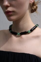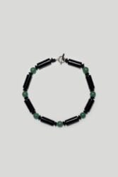 85 % Onyx, 10 % Jade, 5 % Sterling Silver,